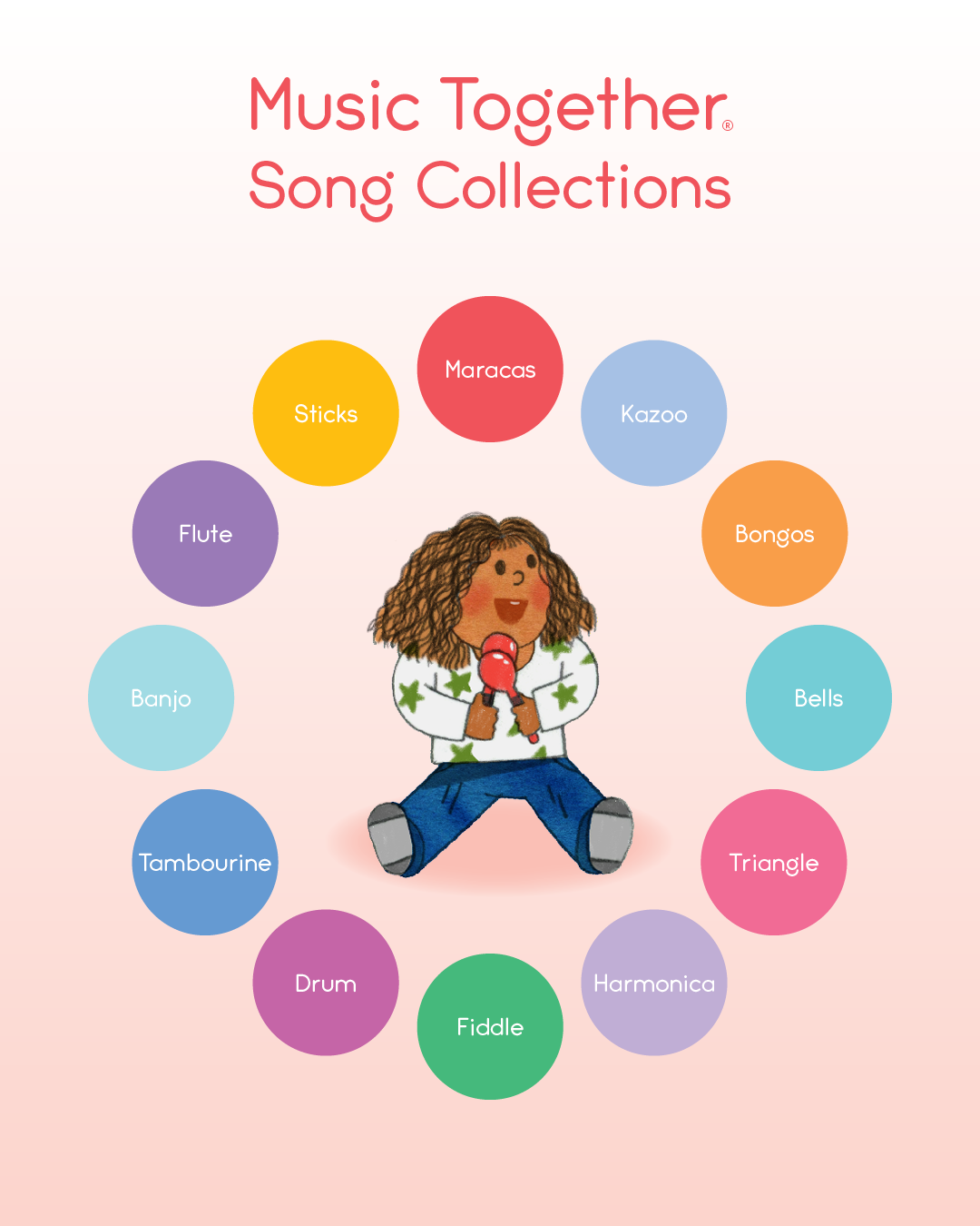 Your children will love the energy of this collection! Songs include the American children’s song, “Ha Ha This a-Way” made famous by legendary blues guitarist Huddle Ledbetter (aka “Lead Belly”), the enchantingly rhythmic "Al citrón," based on a traditional Latin American children's game, and "’Bout My Friends," sure to have everyone dancing to its funky blues. In addition to your weekly classes, your tuition includes recordings and materials for you to use at home, including an illustrated songbook and access to the songs through the Music Together® app.